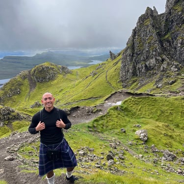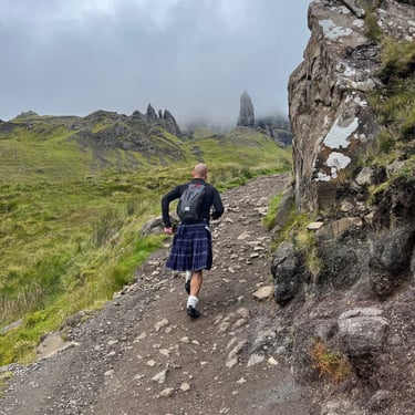 Hike up Old Man Storr in the Isle of Skye (bonus points for doing so in a kilt with a bottle of 8-year “Isle of Skye” scotch whisky)